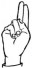 На ћирилици написано КОСТАДИН ШКРЕБИЋ састоји се из 15 слова [?]. Исписано ћириличном једноручном азбуком за глувонеме: